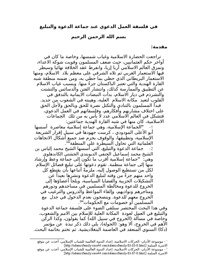 الاصول في دعوة جماعة التبليغ. إن المتتبع لحال جماعة التبليغ والصحيح فرقة التبليغ يجد أنها قد مرت بطورين أعني فرقة التبليغ في السعودية الأول. لقد اختلف الناس في دعوة جماعة التبليغ ما بين مادح وقادح ولا شك أن لهؤلاء تأثيرا بالغا في انتشال كثير من الناس من المعاصي بل من الكفر فكم هدى الله على أيديهم من أهل الضلال والفسوق والكفر. تبلیغی جماعت أو جماعة التبليغ والدعوة هي جماعة إسلامية خصصت نفسها للدعوة والزهد في الدنيا يعتمد أسلوبها على الترغيب والتأثير العاطفي الروحاني بدأت دعوتها في الهند وتنتشر الآن في معظم. دعوة الشباب إلى الرجوع والتوبة من المعاصي وفجأة يتحول هذا التائب وفي خلال ساعات ولحظات إلى داعية.